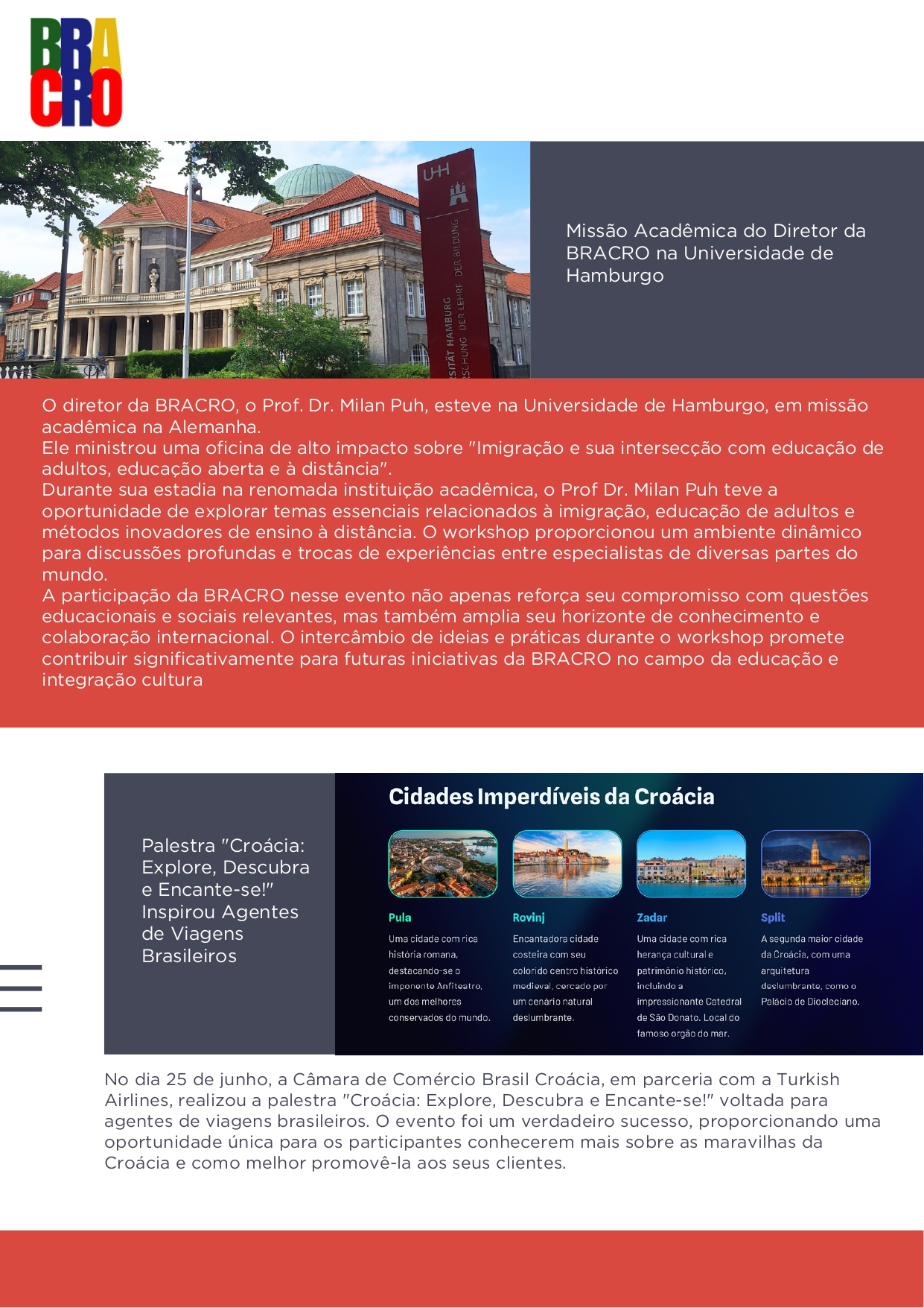 Informativo de julho da Câmara de Comércio Brasil-Croácia