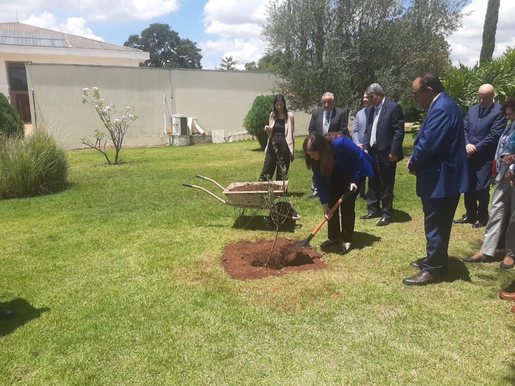 Após a coletiva de imprensa, a Dra. Aghabekian Shahin, acompanhada do embaixador palestino Ibrahim Alzeben e de diversos embaixadores árabes, plantou uma muda de oliveira, como símbolo da paz, na sede da representação diplomática da Palestina.