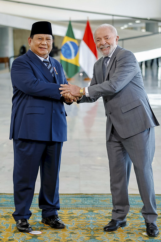 nidos por desafios comuns e visões compartilhadas, Brasil e Indonésia deram, nesta quarta-feira, 9 de julho, mais um passo para estreitar e aprofundar laços estratégicos. Em sua primeira visita oficial ao Brasil, o presidente indonésio, Prabowo Subianto, foi recebido pelo presidente Luiz Inácio Lula da Silva no Palácio do Planalto, em Brasília.