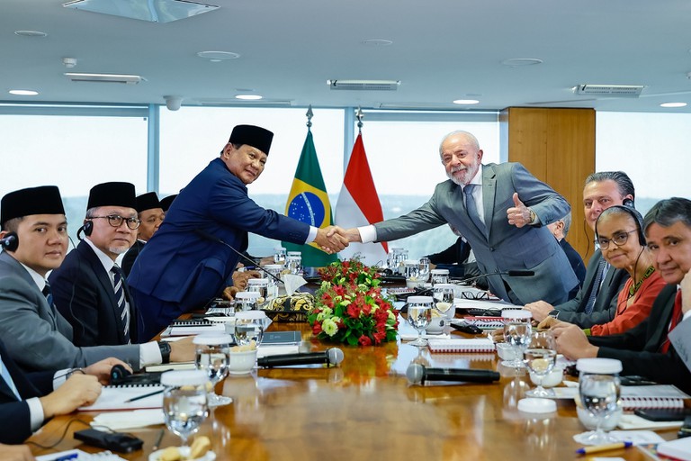 MULTILATERALISMO — Os presidentes conversaram sobre temas da agenda multilateral, como a reforma da governança global, a preservação das florestas e o enfrentamento à crise climática. Segundo Lula, é importante fortalecer o multilateralismo diante das ameaças internacionais. “Ouvi atentamente quando o presidente Prabowo criticou, na Cúpula do BRICS, que o direito internacional esteja sendo subjugado pela força. Por isso, a defesa do multilateralismo é mais necessária do que nunca”, argumentou.